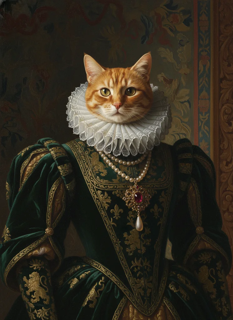 Portrete personalizate AI pentru câini, pisici și orice animal iubit. De la regi și reginele Renașterii la eroi de poveste.