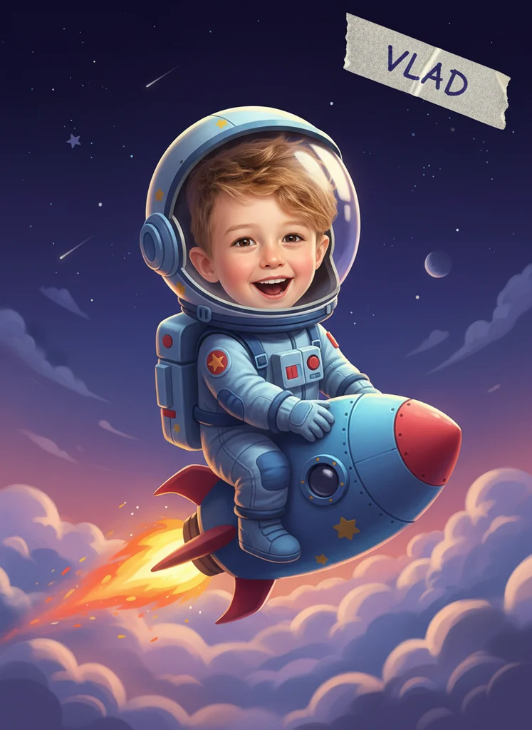 Portrete magice pentru cei mici. Transformă-ți copilul într-un supererou, astronaut sau personaj de basm într-un stil pictural blând și jucăuș.