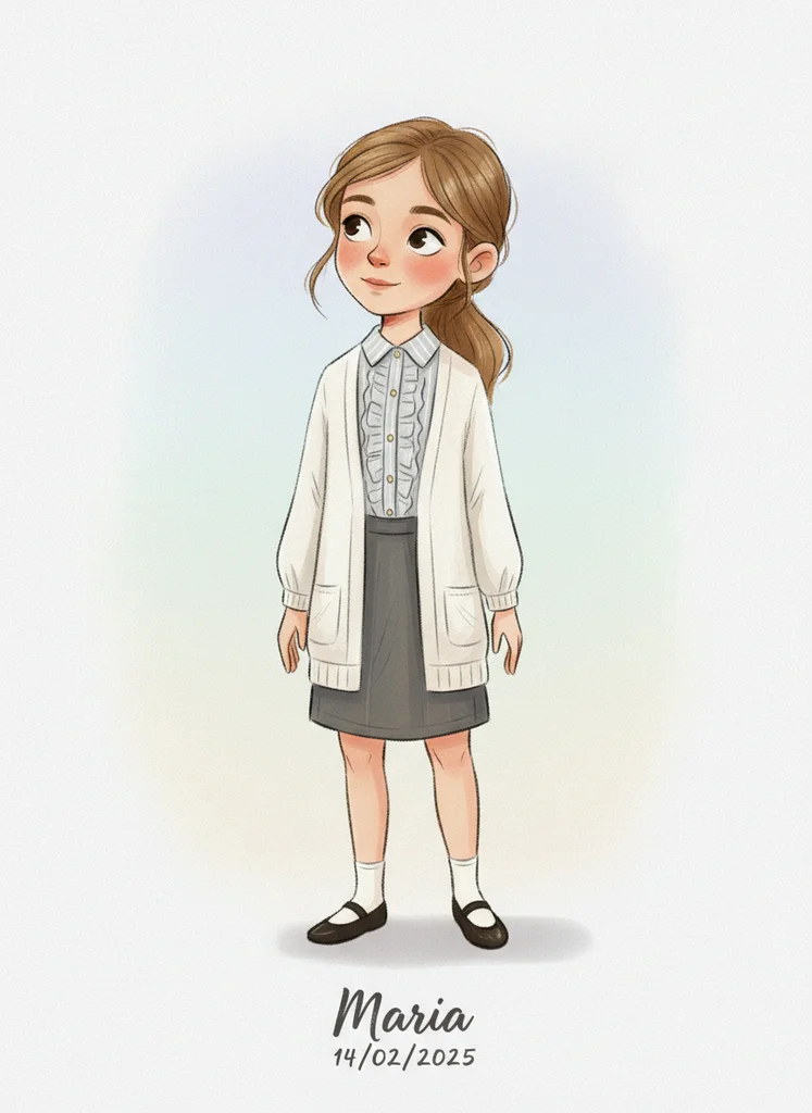 Ilustrație full-body de copil în stil pictural blând cu estetică children's book, hand-drawn digital painting